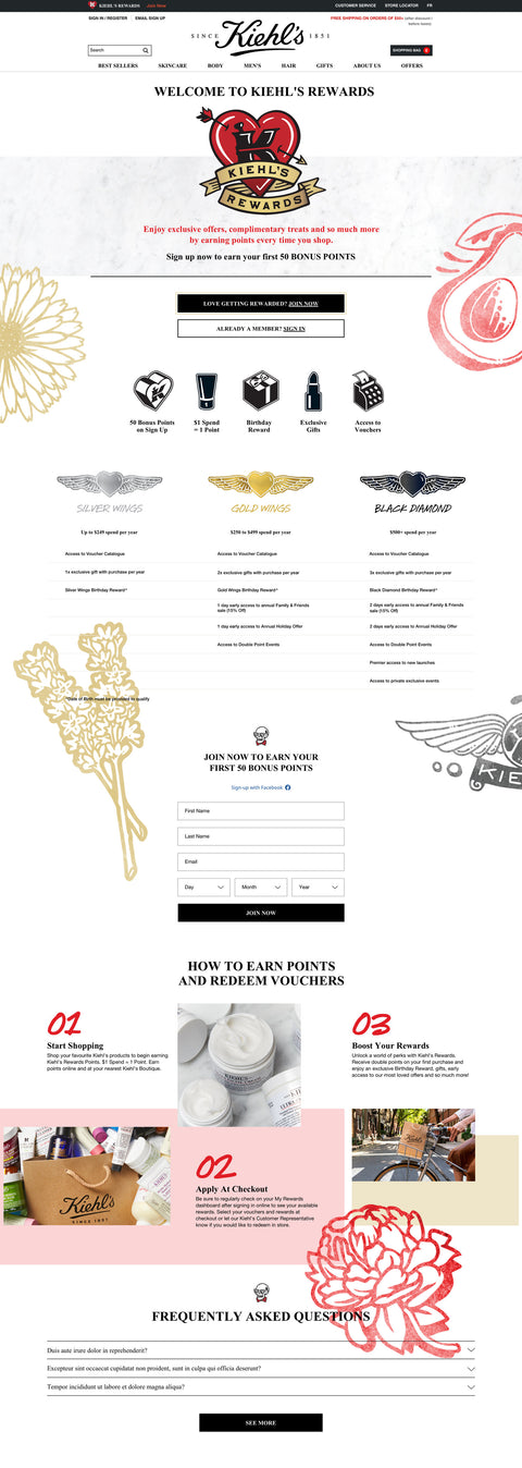 Under the L’Oréal banner, Cassie was engaged to collaborate on loyalty programs for iconic brands Kiehl’s (Since 1851) and Lancôme. These projects required seamlessly integrating fresh UX strategies and vibrant, brand-aligned design within the constraints of a complex, heritage-based global site structure.