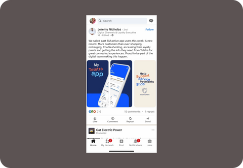 - Strategic use of Telstra’s logo, colour palette, and colour blocking to ensure alignment with the refreshed brand.